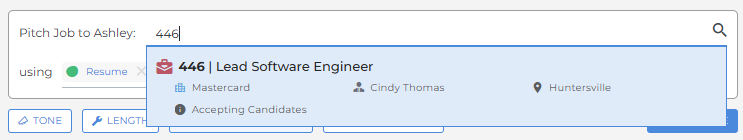 Pitch Job to Candidate: Generates a personalized message introducing a job opportunity to a candidate.