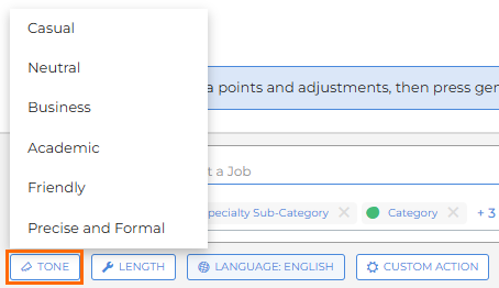 CUSTOM ACTION: This option opens a text field where you can enter any additional instructions, such as requesting specific formatting. Once you have entered your custom action, click SUBMIT.