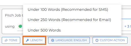 Use the TONE, LENGTH, LANGUAGE, or CUSTOM ACTION buttons to select any required adjustments: