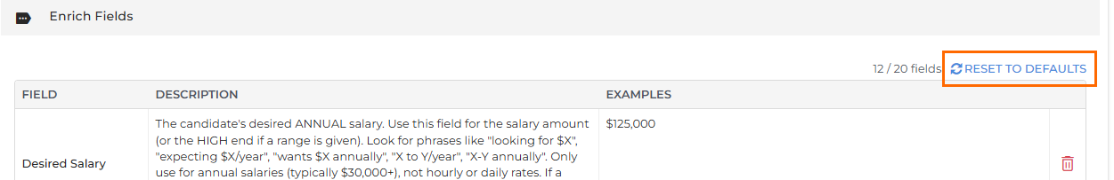 Admin users can configure which candidate fields Amplify should enrich from notes. You can select up to 20 fields, including custom fields, and this configuration applies to all users in your corporation.