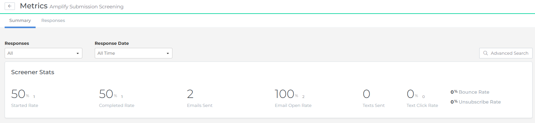 The Summary page provides a high-level overview of your engagement’s performance, including Screener Stats and Screening Step metrics: