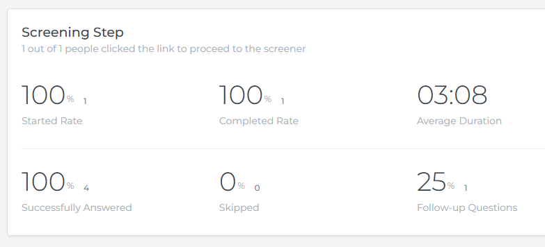 Follow-up Questions – Tracks when the screener dynamically generates additional questions based on candidate responses.