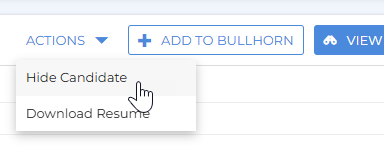To add a candidate, click Add to Bullhorn from the candidate tile or slideout.