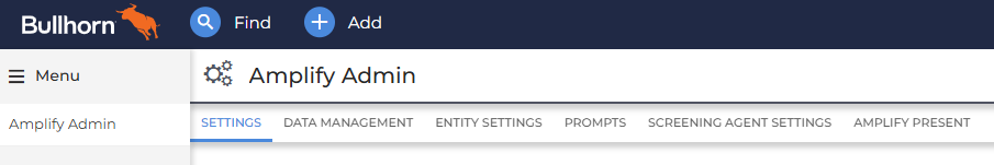 Amplify Admin is the control center for managing and configuring Amplify features in Bullhorn. From here, admin users can configure how the Amplify Assistant behaves on Jobs, Candidates, and Contacts, and manage the custom prompts and data that power Amplify.