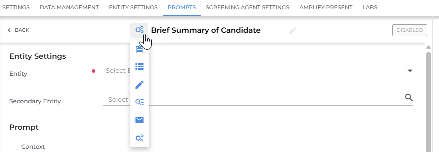 Choose the primary entity for the prompt (Candidate, Contact, Job).