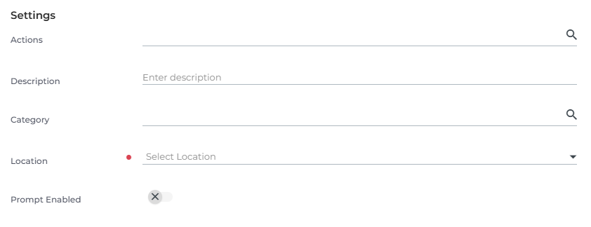 Define which actions appear in the Actions drop down when the prompt generates a response.
