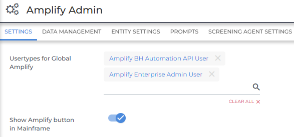 If users do not see the Amplify icon, confirm that their user type has access to Amplify Chat and that the Show Amplify Button in Mainframe setting is turned on.