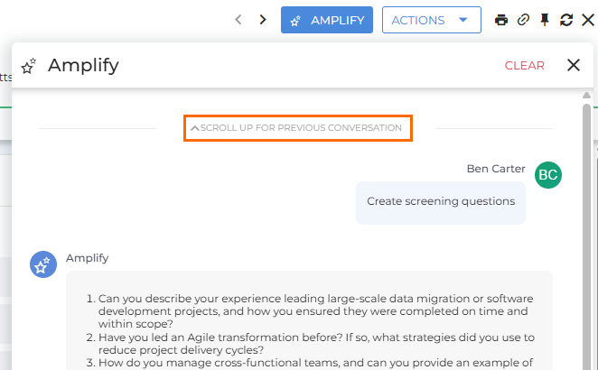 Amplify Assistant is ideal for tasks focused on a single record, such as summarizing a candidate, drafting a client message, or improving a job description. If your question spans multiple records or data sources, use Amplify Chat instead.