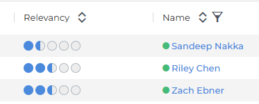 The Relevancy column displays a row of circles that fill in based on how strong the match is. More filled circles indicate a stronger match.