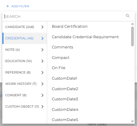 Adding filters allows you to narrow results across many different parts of the Candidate record, including Notes and Custom Objects. This helps you focus only on candidates that meet your criteria.