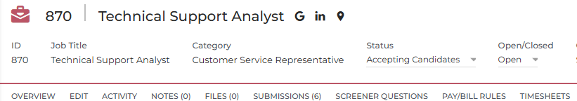 The Profile Header is the section that appears at the top of a record and remains visible as you navigate through its tabs. It’s designed to display key information that users may need at a glance, such as contact details for candidates and contacts, or the status and category of a job.