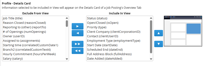 Under Profile - Details Card, use the arrow buttons to move desired fields to Include in View.