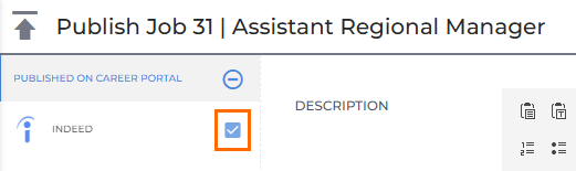 If you don’t see the Indeed checkbox on the Publish Job screen, contact Support to request enablement.