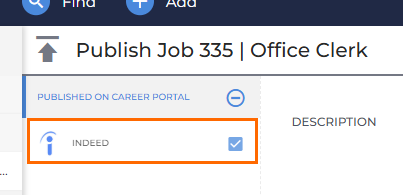 The Indeed checkbox does not confirm whether a job is currently live on Indeed. To confirm a job’s status, refer to the Indeed Publishing Status field.
