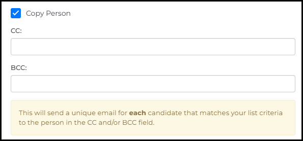 When enabled, the Copy Person option automatically sends a duplicate copy of each automated email to your designated inbox using BCC (Blind Carbon Copy).