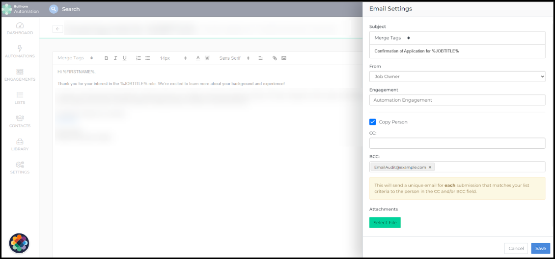 This ensures an accurate, invisible record of every email sent through Bullhorn Automation.