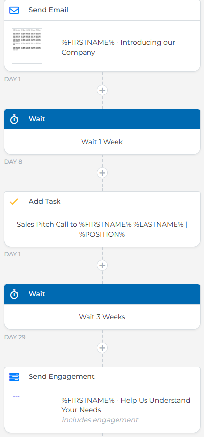 Once your list is ready, build the workflow that will guide your prospecting process from first email to follow-up call.