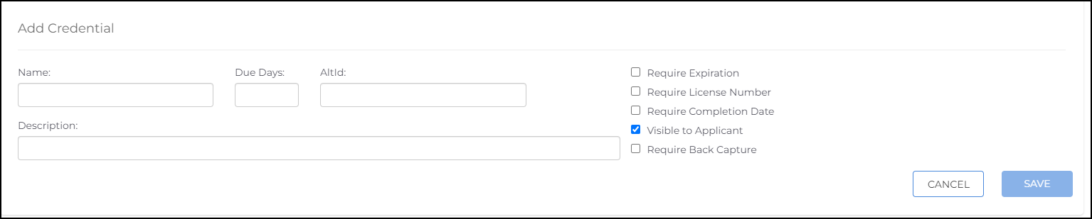 - Due Days: Enter how many days the candidate has to provide information about the credential.