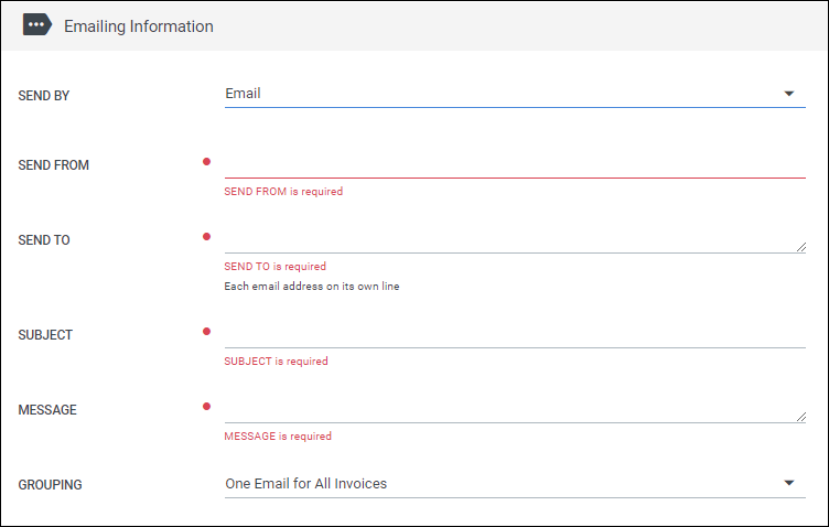 - This email is used for Client Contacts. The Send To address for emails is entered in the Emailing Information section toward the bottom of the page.