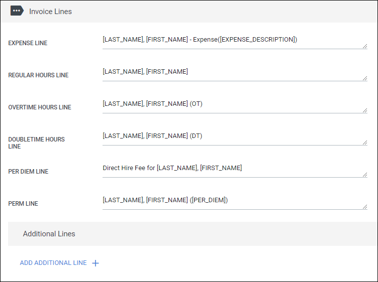 This section allows you to change the information that displays for individual line items on an invoice.