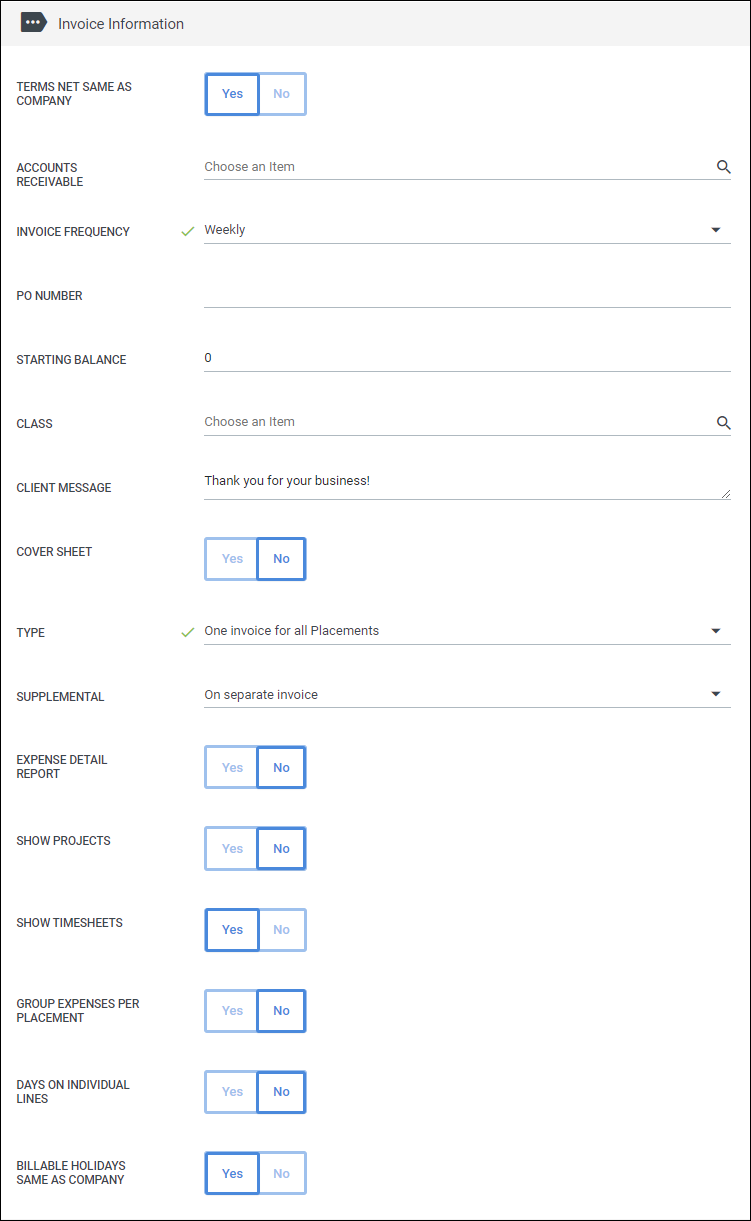 Here you can customize various invoice settings such as frequency and terms.
