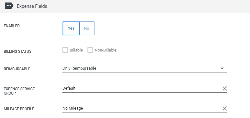 - Determine if the internal employee will be able to submit Billable and/or Non-Billable expenses, whether the expenses will be Reimbursable and/or Non-Reimbursable, and which Expense and/or Mileage profiles to be applied to the placement.