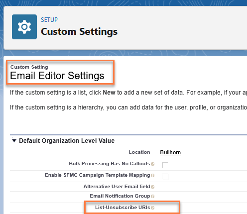 When setting a chunk size value, please be aware that there is a dependency on another email send related feature of the BHRC package, the List Unsubscribe feature. The following values should be used as a starting point, depending on the number of configured List-Unsubscribe URIs in the Email Editor settings (Setup > Custom Settings > Email Editor Settings > List-Unsubscribe URIs).