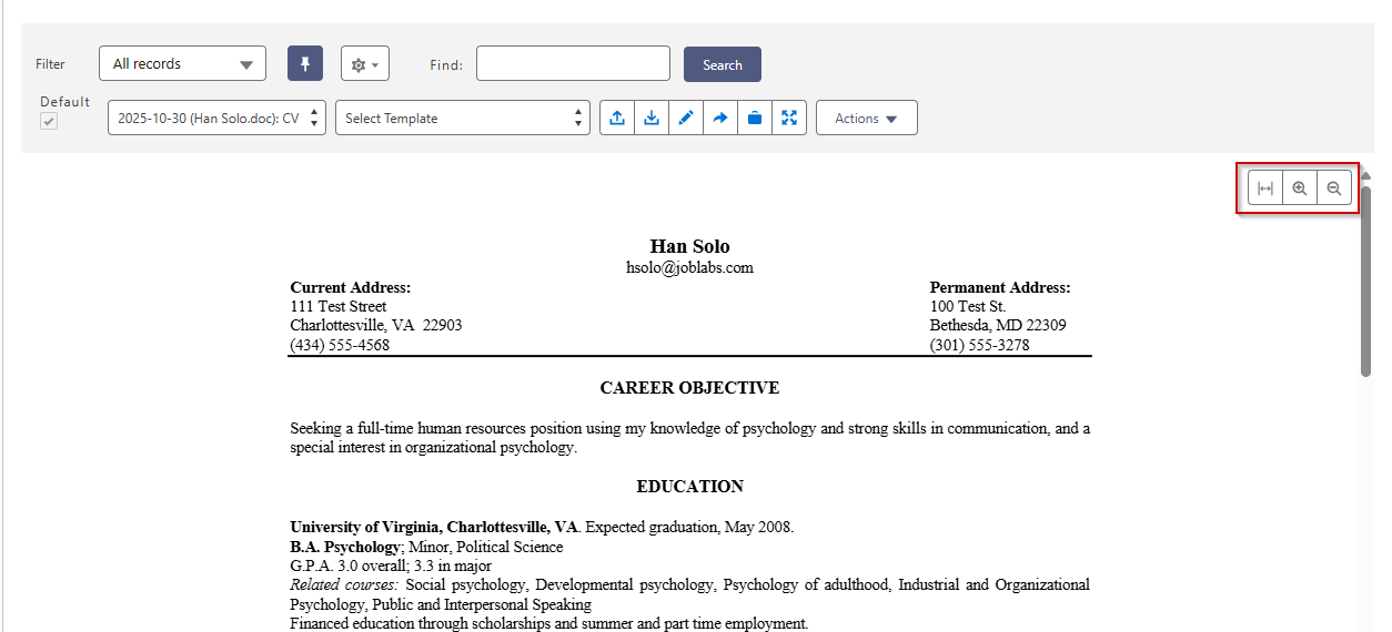 In the Resume Manager, we improved the viewing experience for resumes and documents on smaller screens.