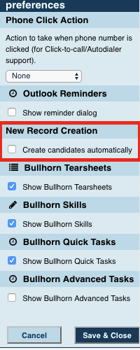 Each ATS in the Bullhorn Sourcing Accelerator could have unique features specifically for that ATS. You can become familiar with the create candidate feature of Bullhorn with the following reference: