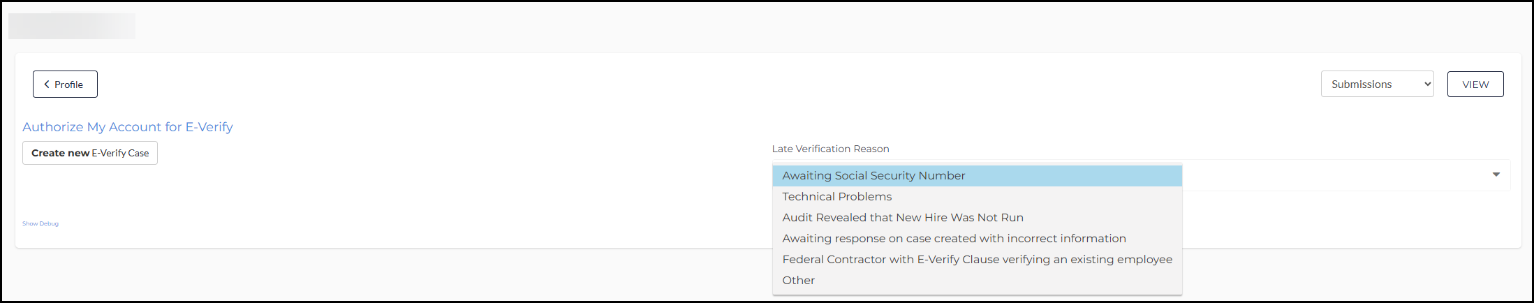 If you continue to experience E-Verify submission errors after following these troubleshooting steps, contact Bullhorn Support with the following information: