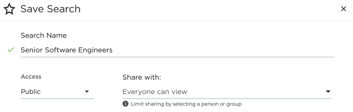 This enhancement makes it easier for teams to collaborate and maintain consistency across their workflows. Users can now share saved searches seamlessly within their organization, reducing duplicate setup and ensuring everyone has access to the same candidate views.