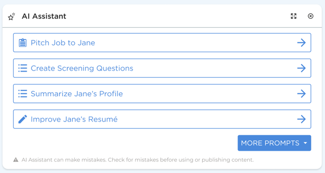 This update makes it easier to see the available prompts, allowing users to quickly find what they need. Additionally, it serves as a crucial step towards creating a more unified user experience with AI Assistant as we work on infusing prompt generation into different recruitment workflows and pages.