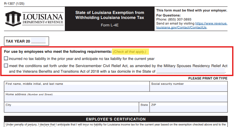2025 US State Tax Form - Louisiana Withholding Form & Exemption Certificate (R-1300 & R-1307)