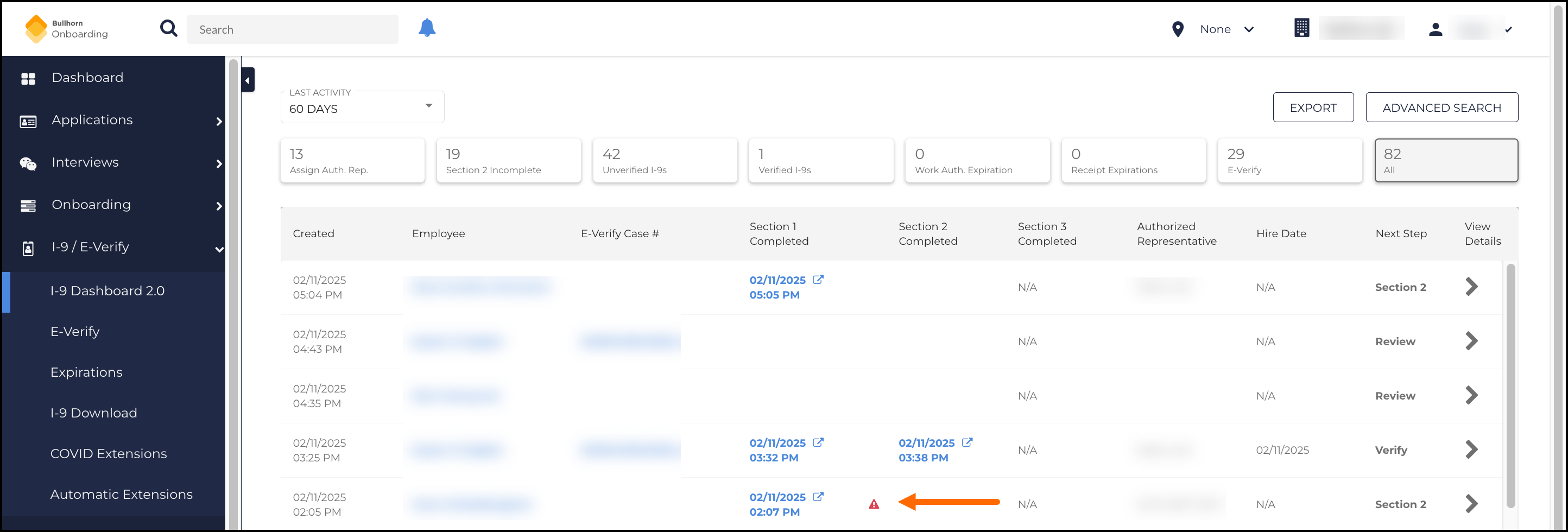 I-9 forms now correctly appear in the I-9 Dashboard and under the appropriate filters.
