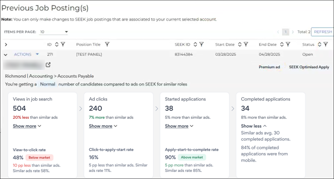 After publishing a job from Bullhorn and syncing it with SEEK, you can now access valuable insights into SEEK ad performance data performance. h3.