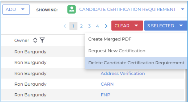 Users can now mass delete Candidate Certification Requirements directly within the Candidate record under the Credentials tab. This simplifies certification management and speeds up workflow.